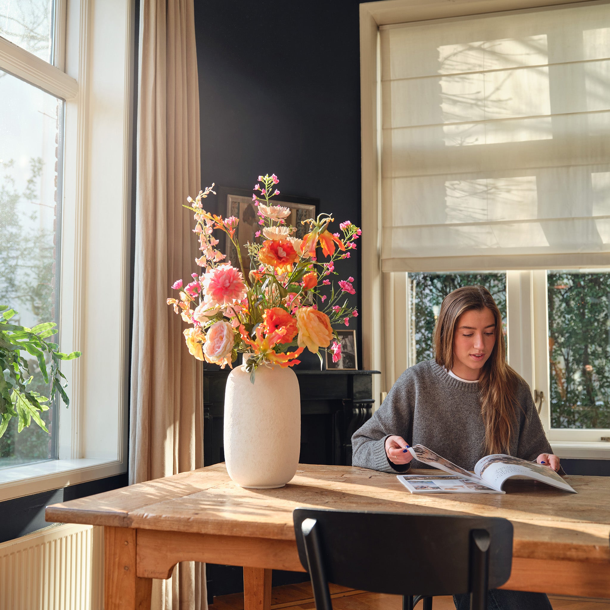 Les fleurs artificielles conservent leur beauté bien plus longtemps que les fleurs fraîches. Que vous recherchiez un bouquet de fleurs en soie , un grand bouquet artificiel ou un petit bouquet artificiel , nous considérons nos compositions comme de véritables objets de design — et non comme des produits jetables.