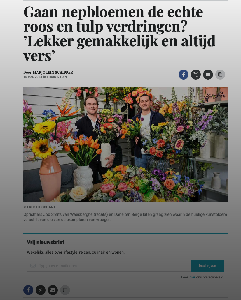 Un bel article sur l'essor des fleurs en soie aux Pays-Bas et le rôle de Blooming Good en tant que marque leader de fleurs artificielles dans ce domaine.