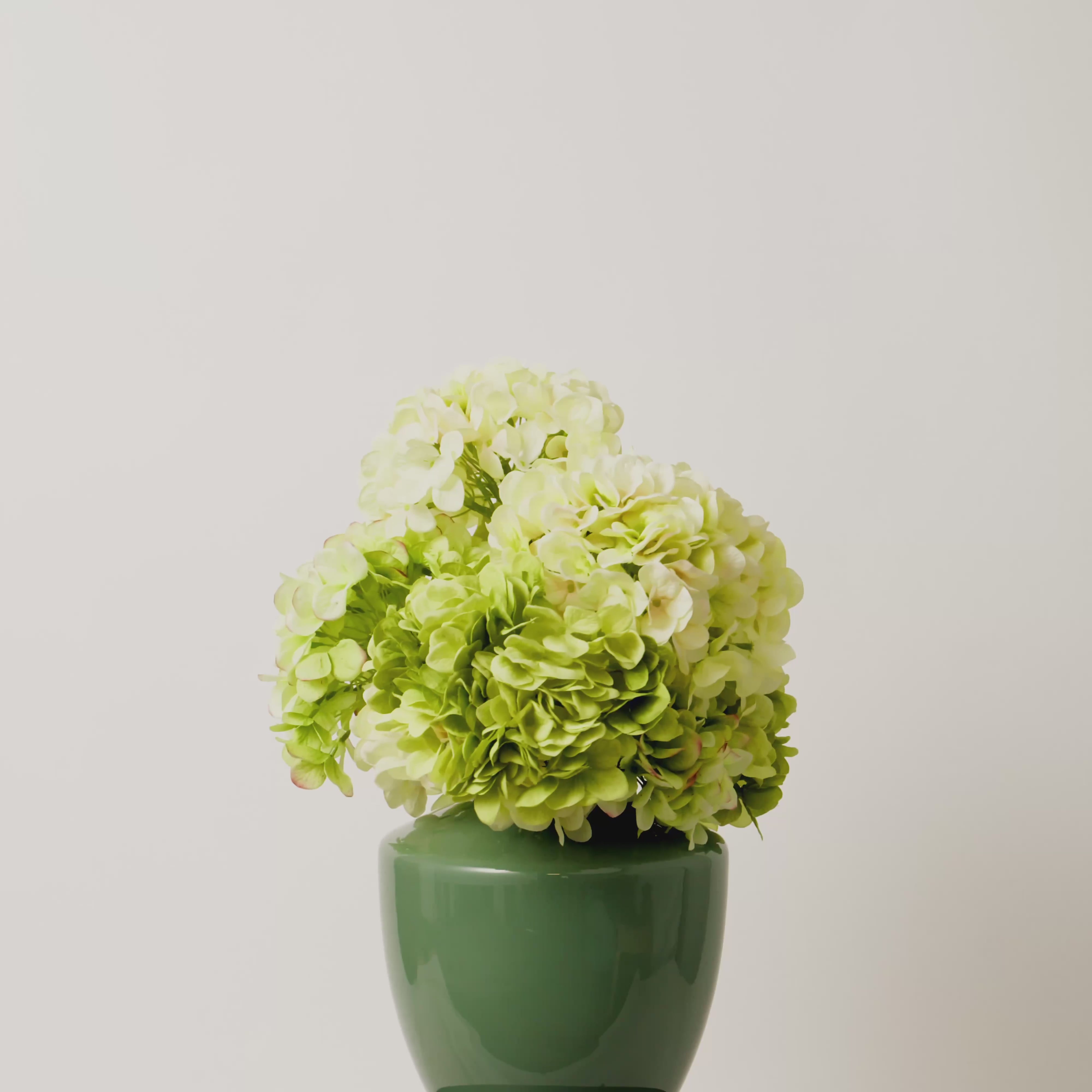 Een boeket dat rust en frisheid uitstraalt. Good MC.21 bestaat uit groene hortensia’s in genuanceerde tinten die moeiteloos samensmelten tot een natuurlijk geheel. Je voelt je meteen thuis!
