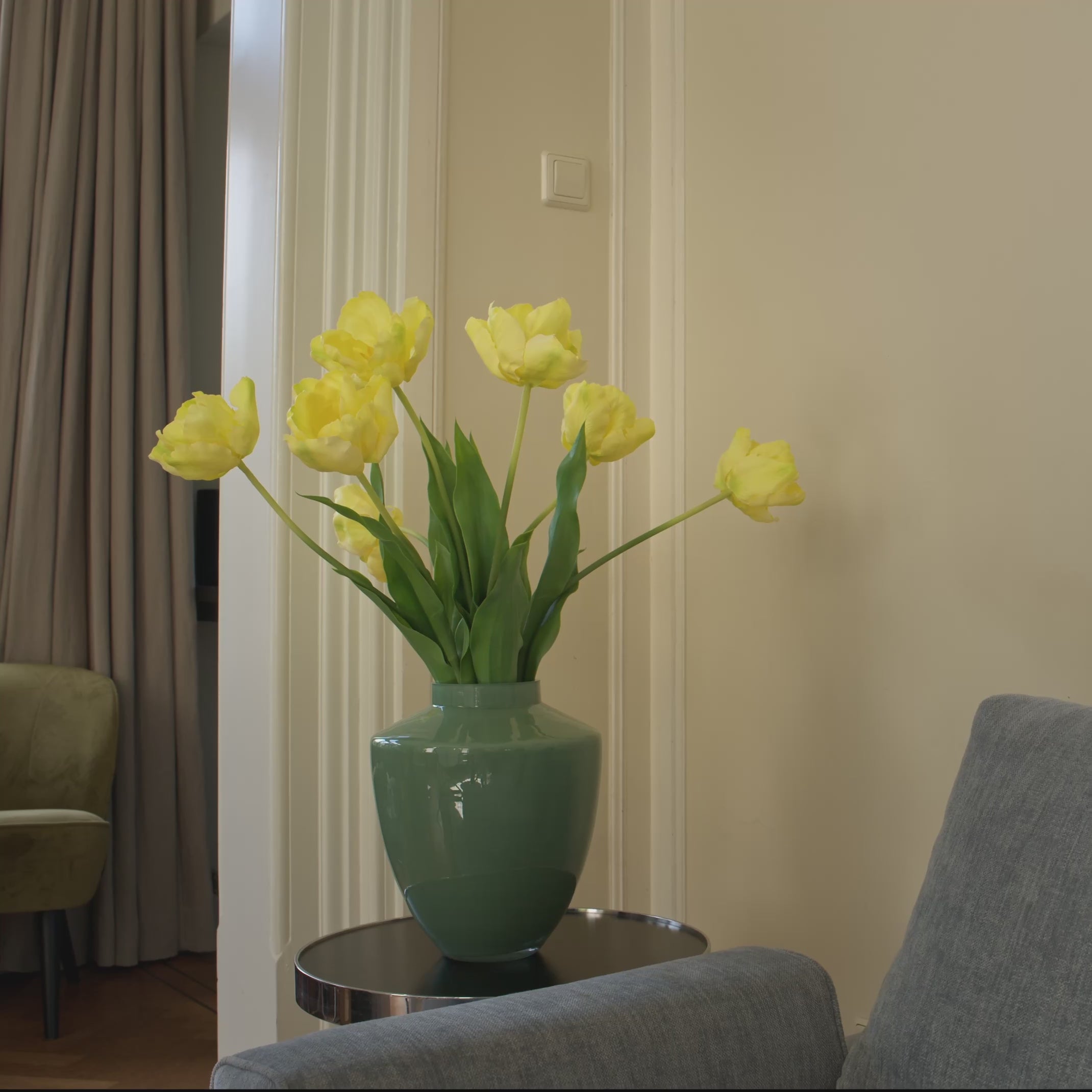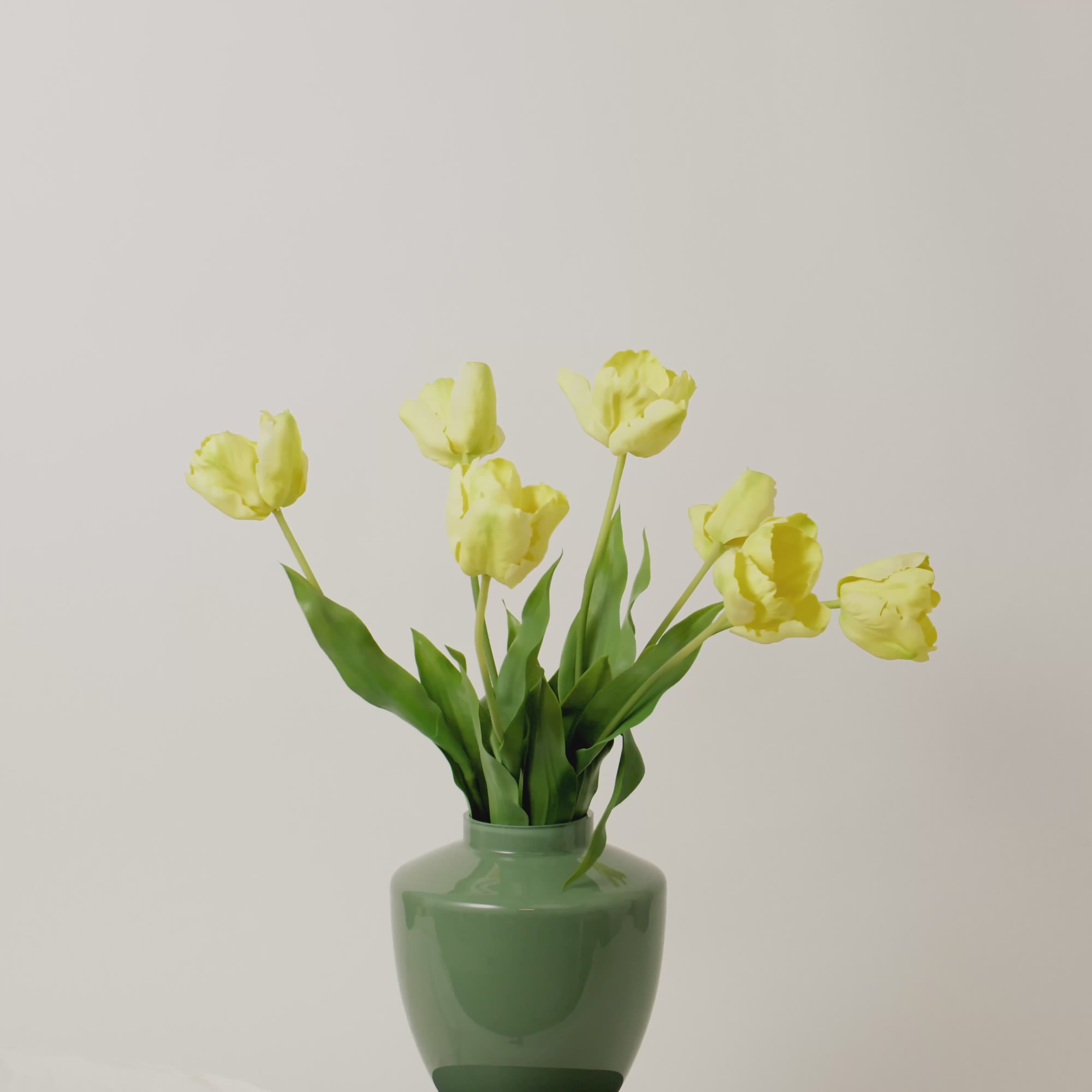Een frisse, zonnige toevoeging aan elk interieur. Good MC.26 bestaat uit zeven zijden tulpen in een warme gele tint met een natuurlijke, golvende vorm. Breng het zonnetje in huis!