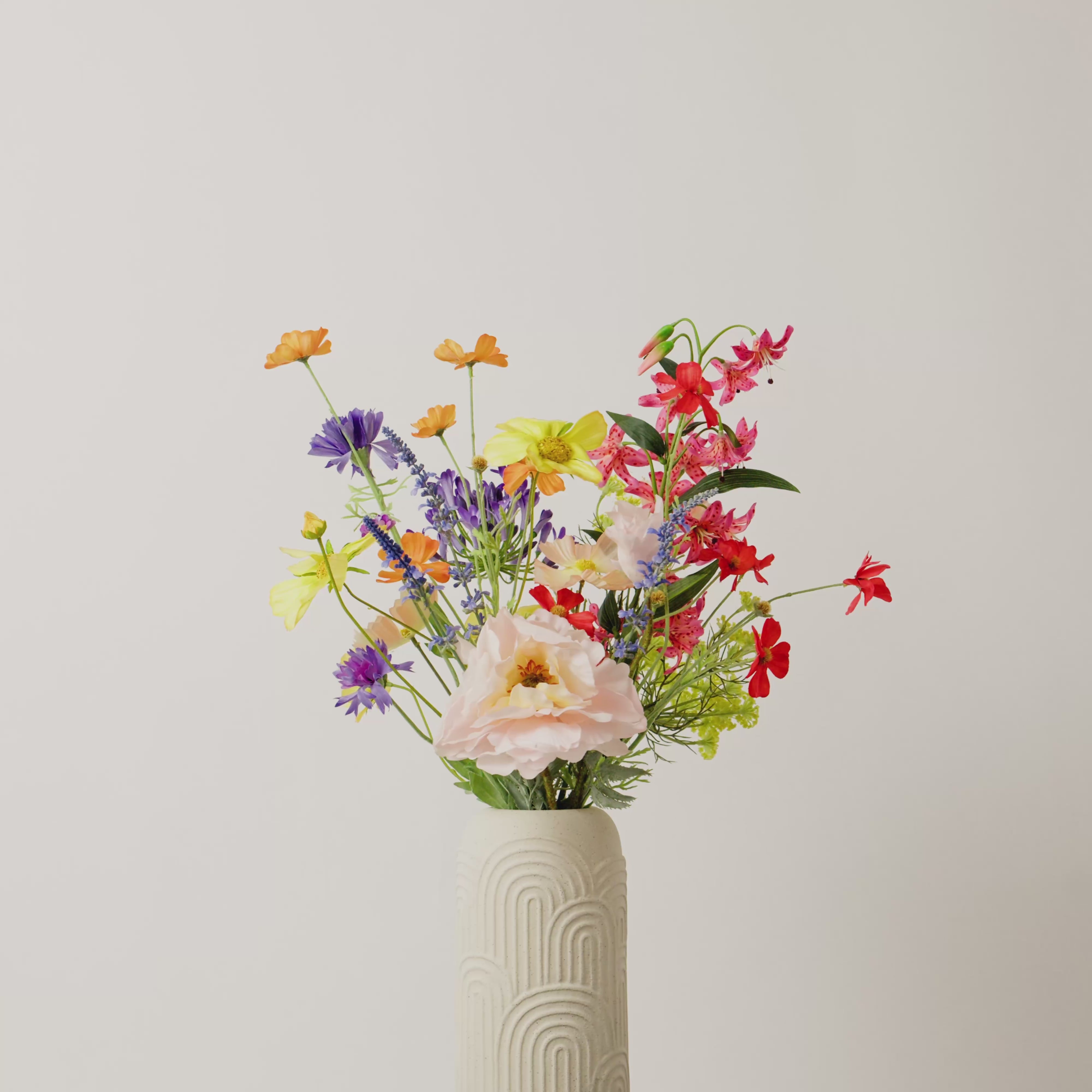 Een zomerse bestseller vol kleur en karakter. Good SS.08 is een luchtig veldboeket dat sprankelt van energie, opgebouwd uit verschillende tinten cosmea in real-touch varianten.